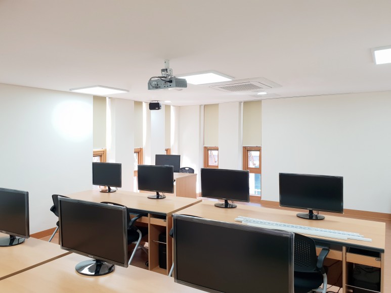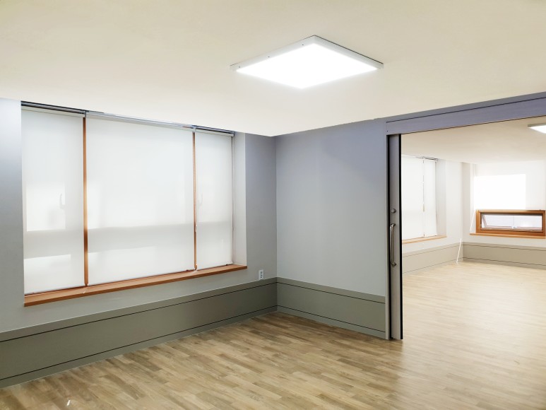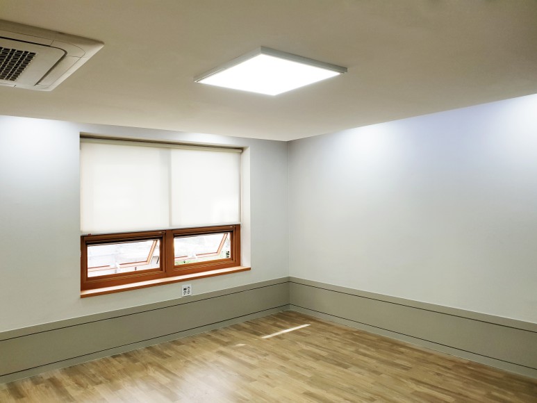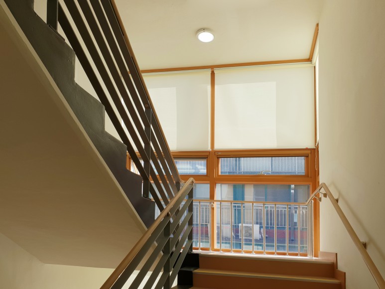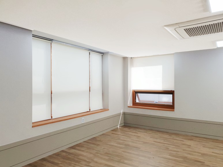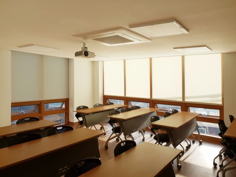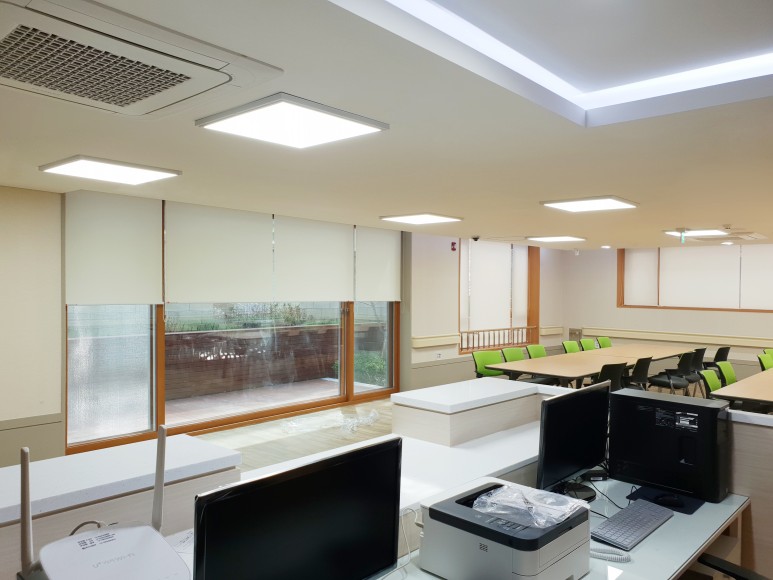 시공 전에는 밝던 교실이 시공 후 블라인드의 컬러가
