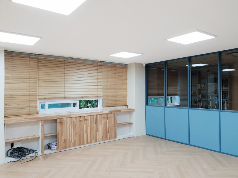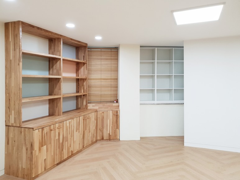 위 시공현장의 서랍, 선반 색상과 맞춰