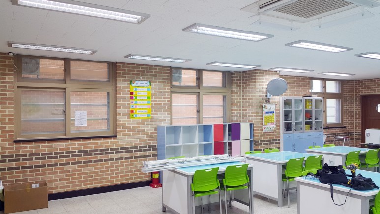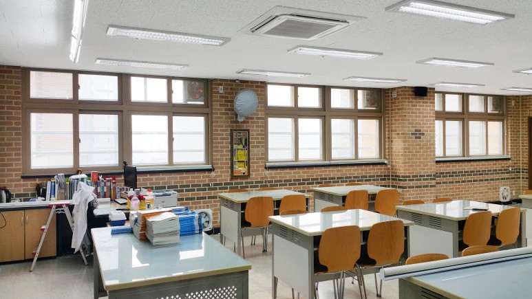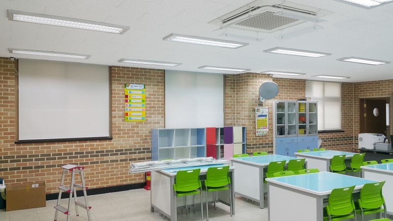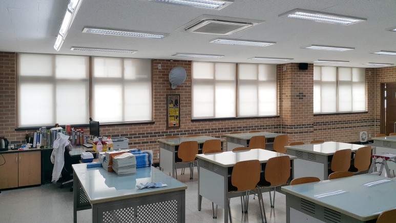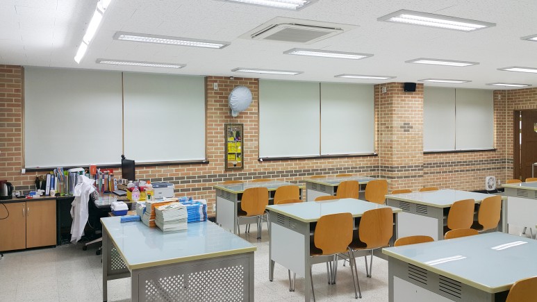 블라인드 시공 후 시야를 차단시켜 수업할때