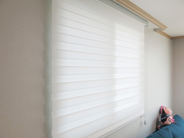 블라인드는 벽지나 천장과 같이 자연스럽게 어울러질 수 있도록 화이트 색상을 선택하였습니다.