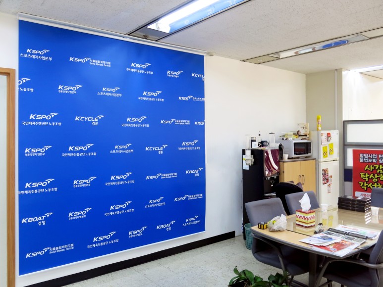 이미지를 광고용으로 출력하여, 외부에서 로고가 보이도록 제작되었습니다.