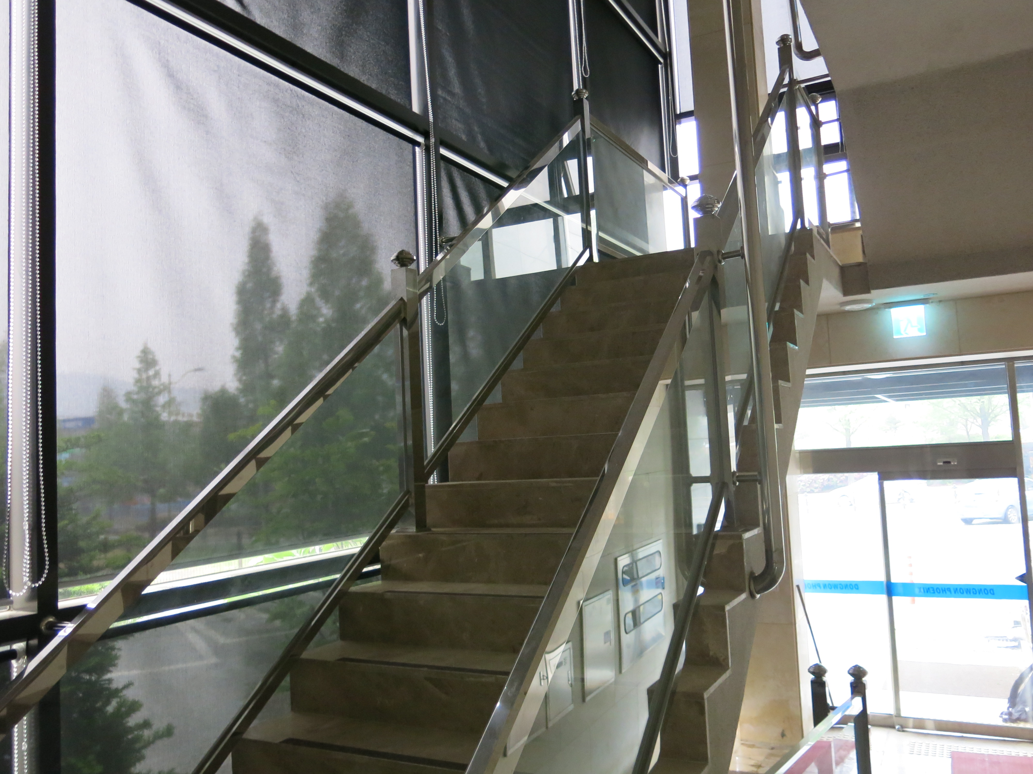 건물 내부가 보이는게 싫다고 하셔서 전체적으로 블라인드를 맞췄습니다.
