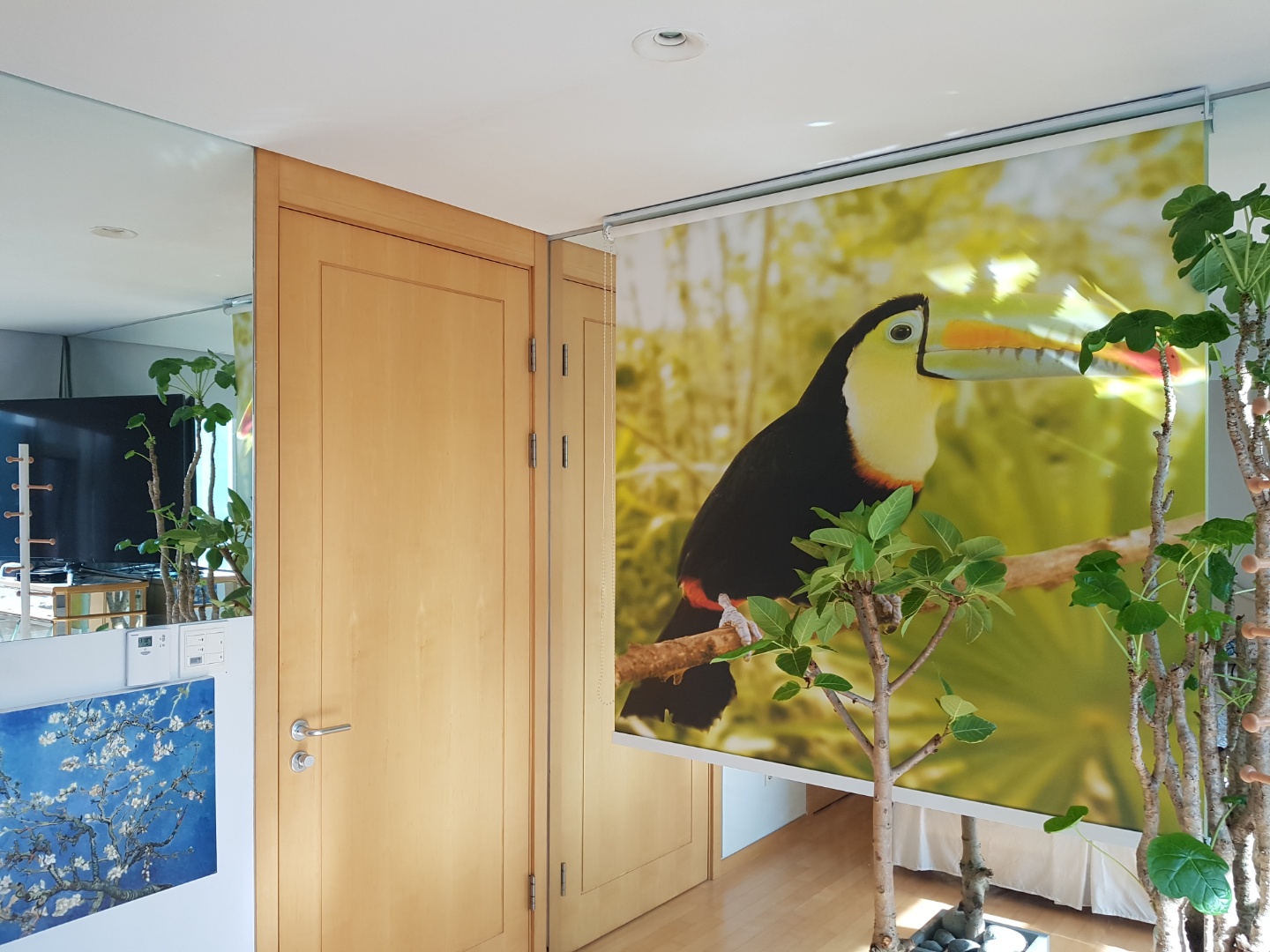 이미지를 넣어 출력한 실사 롤스크린 제품으로 하게 되었습니다.