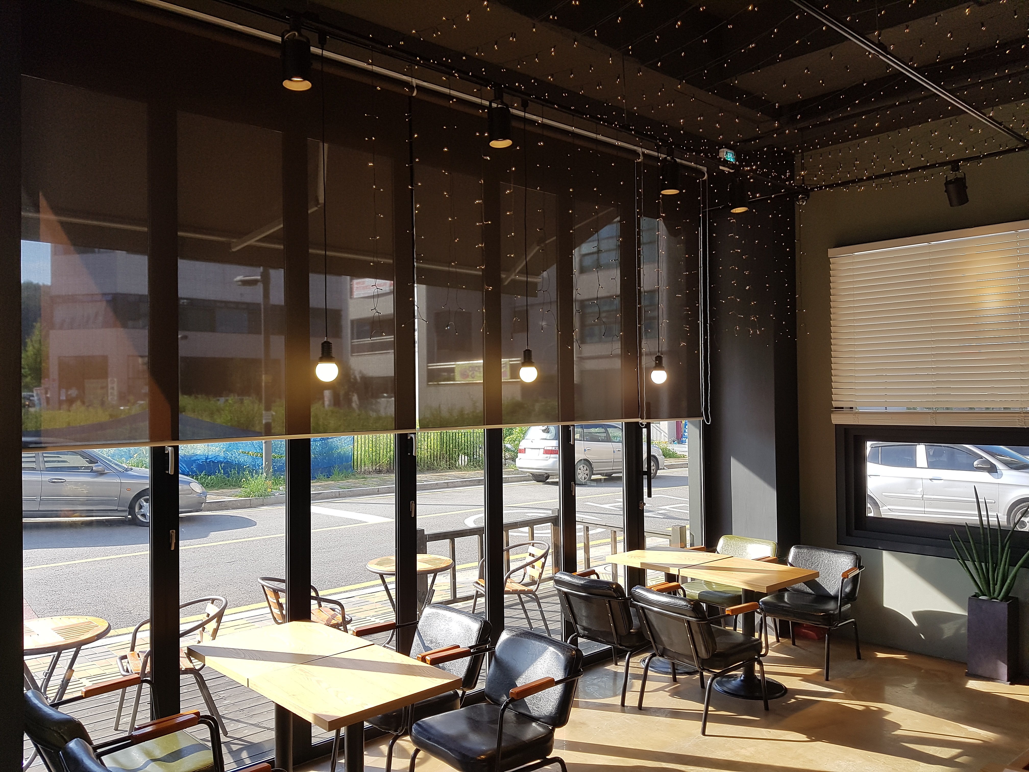 카페 현장이며 다른 쪽 벽면에는 우드블라인드가 이미 설치되어 있었습니다.