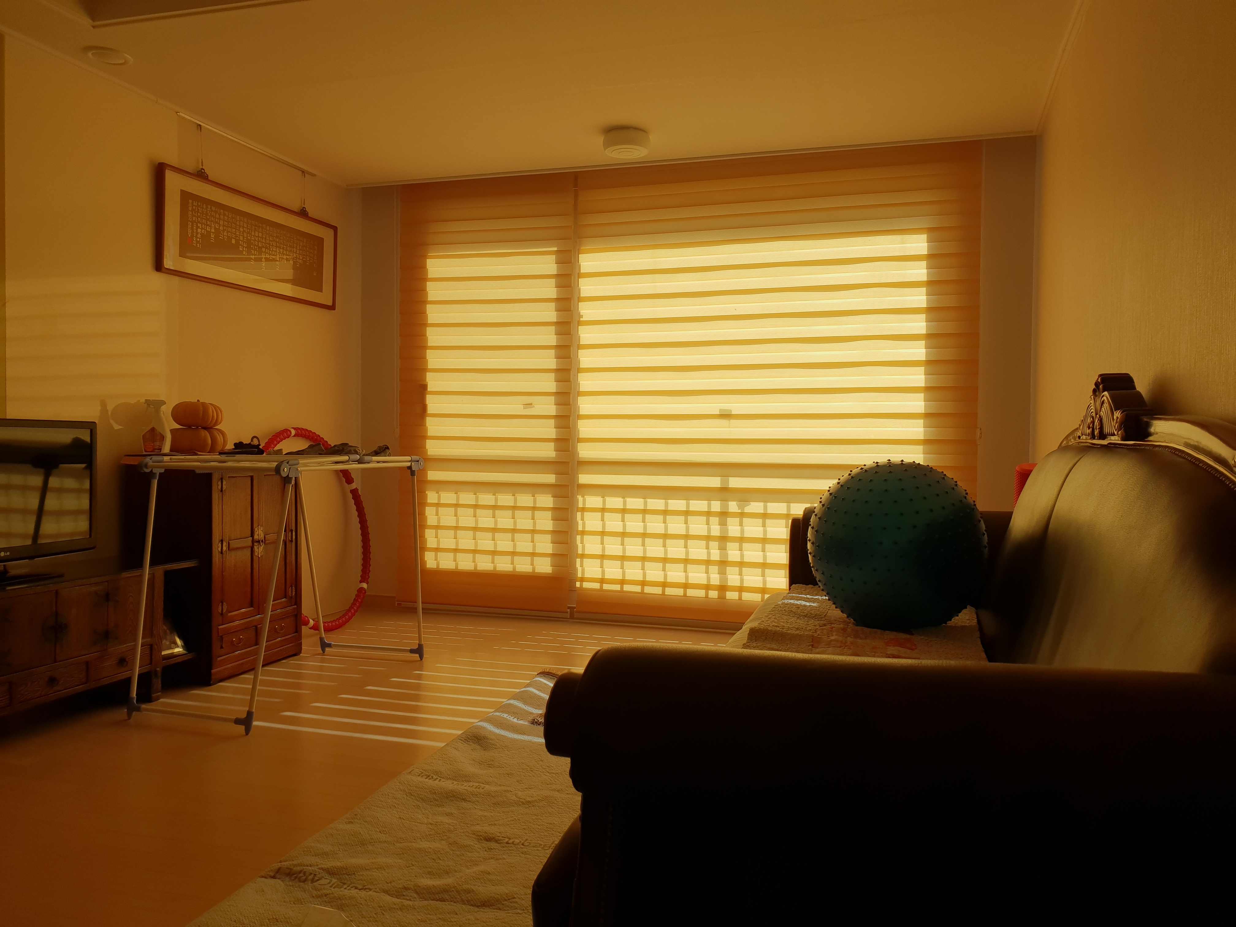 햇빛이 들어오는 낮시간대에는 블라인드 색이 빛을 받아