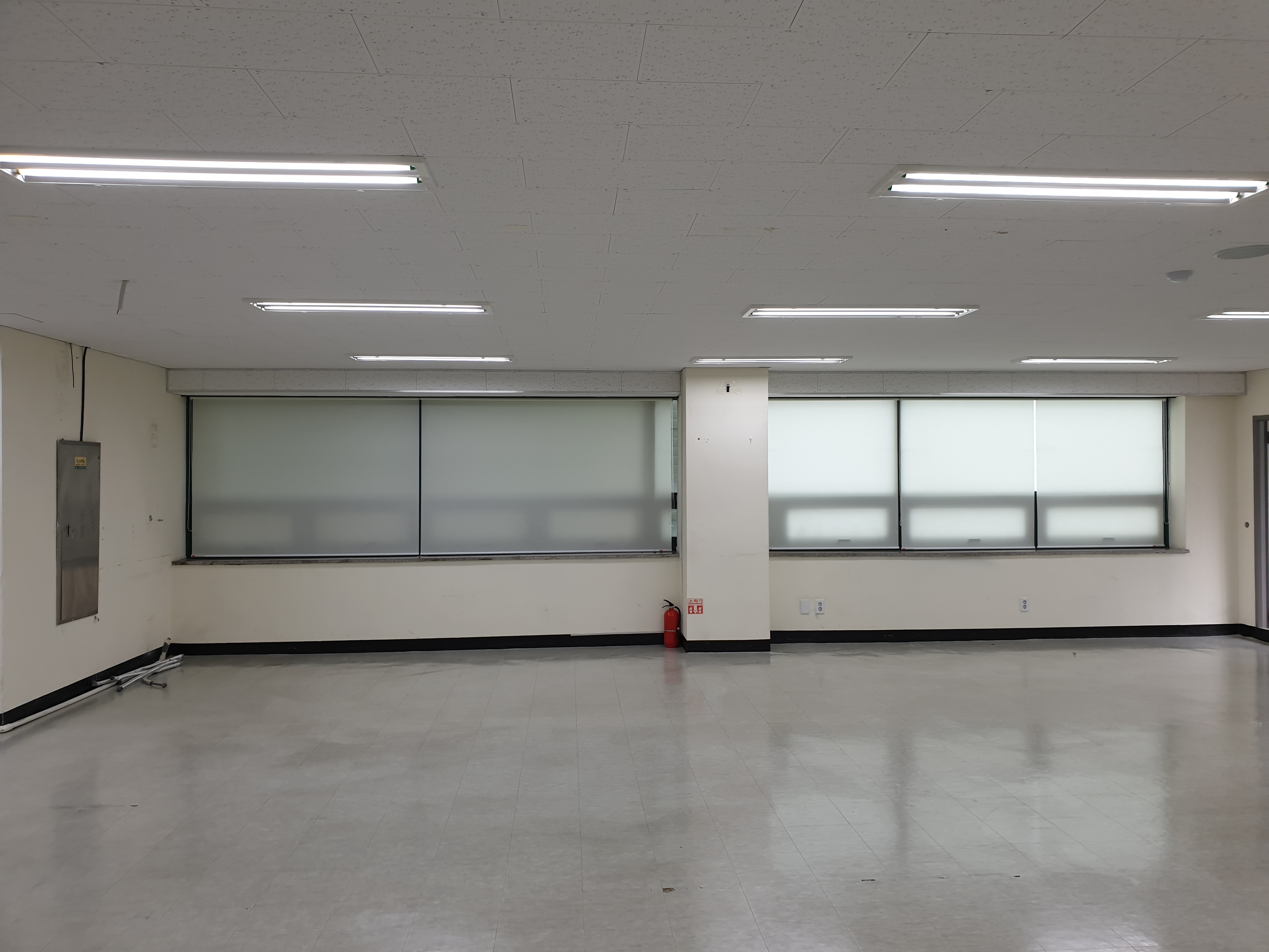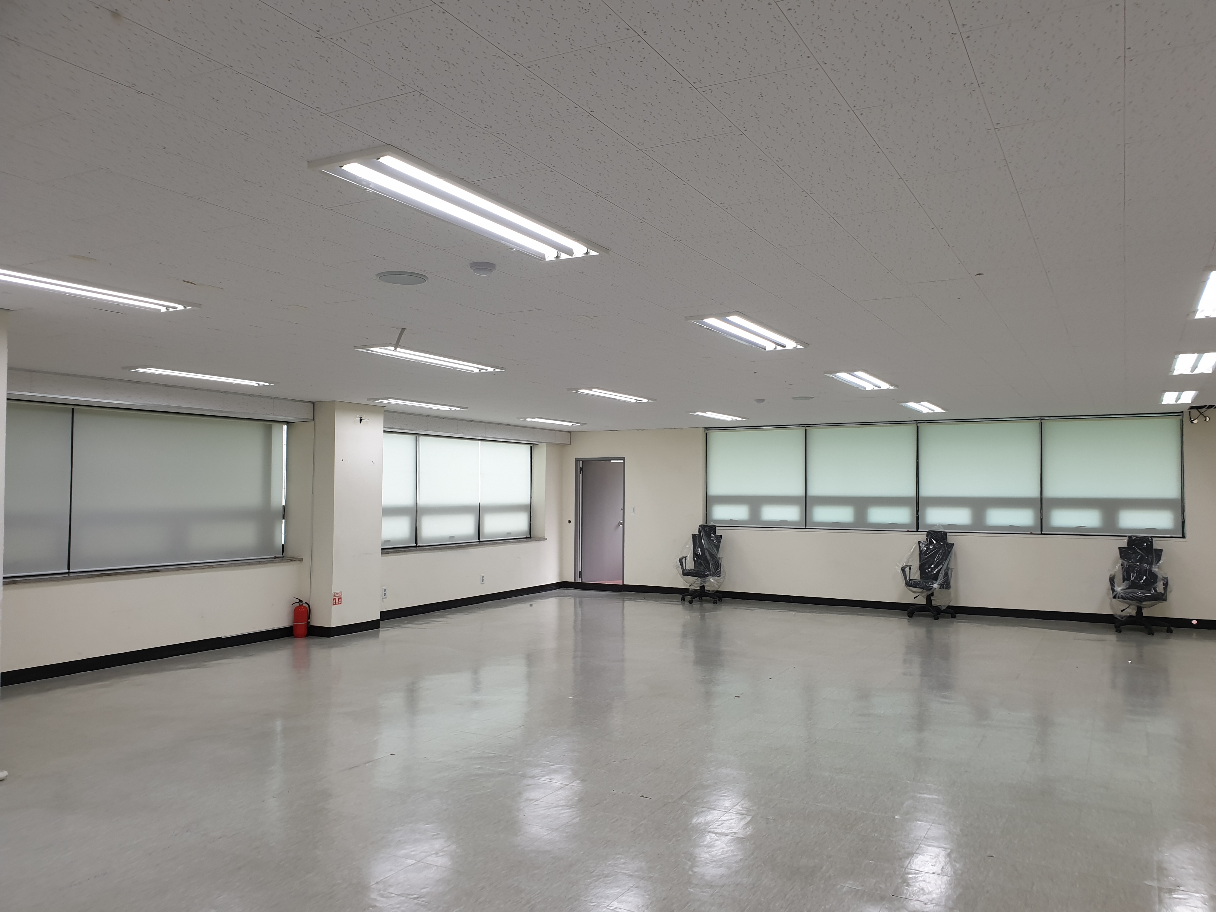 넓은 공간에 3개씩 나눠져있는 창문에 롤스크린 제품을 나눠 시공한 모습입니다.