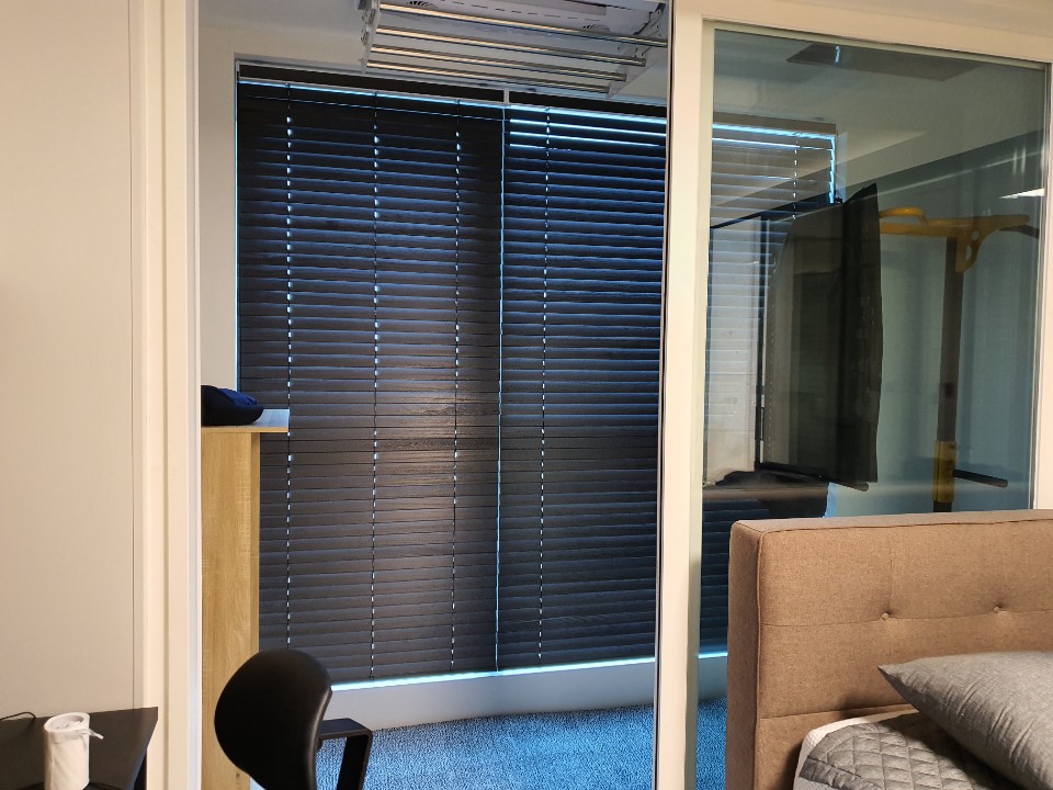 베란다와 방 모두 같은 우드블라인드 제품으로 시공을 했습니다.