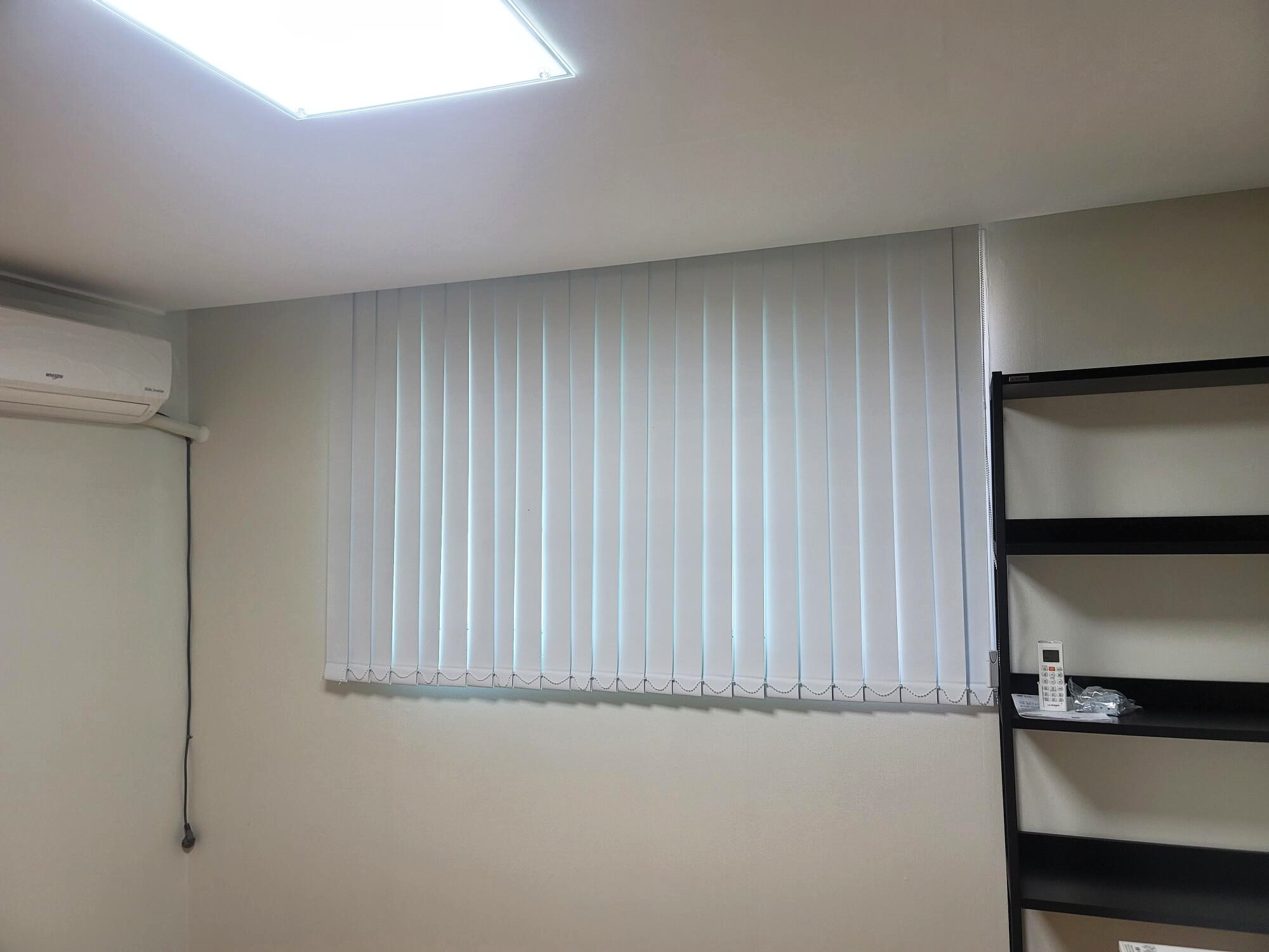 화이트 색상의 버티컬블라인드가 깔끔하게 시공되었습니다.