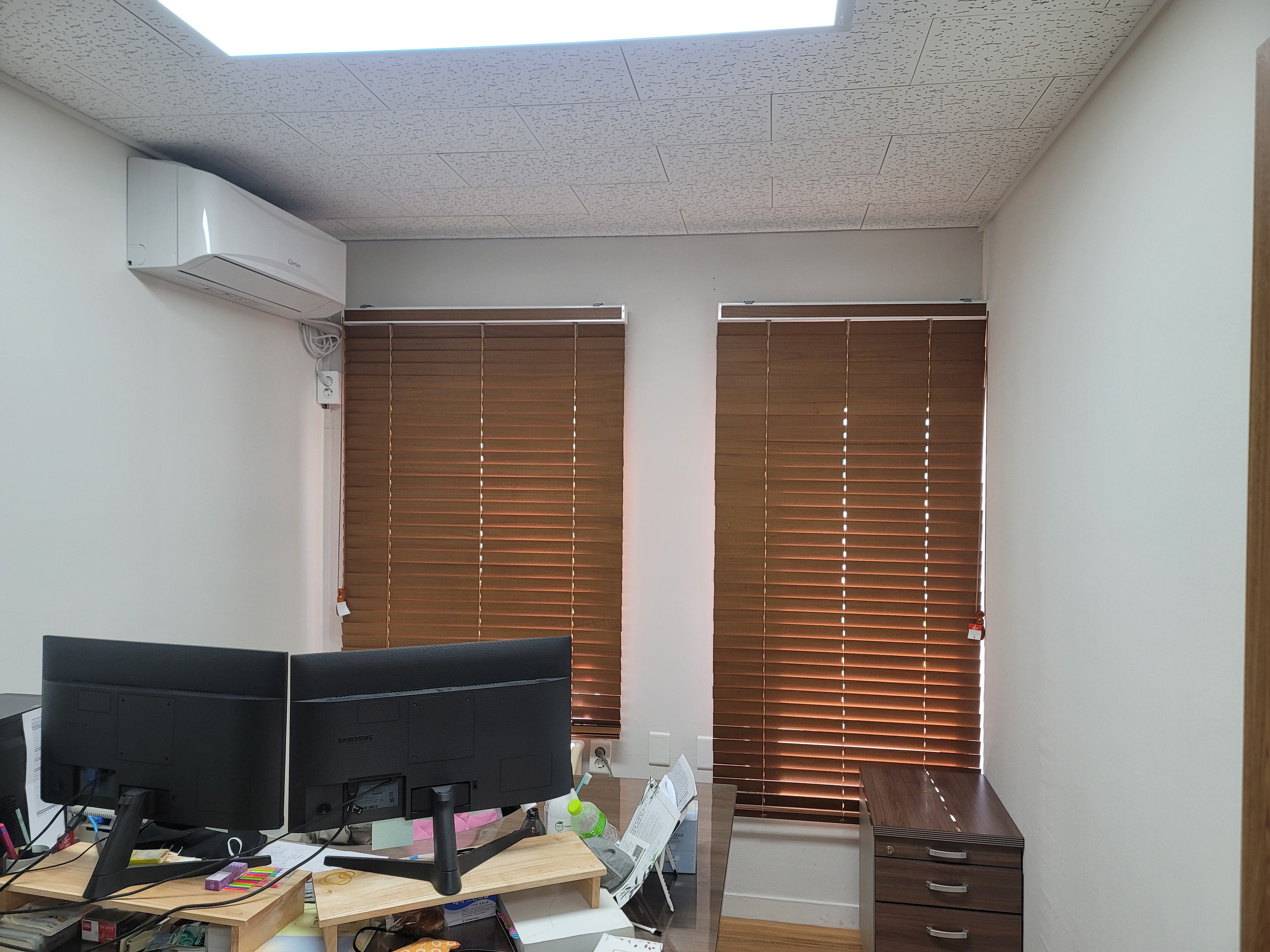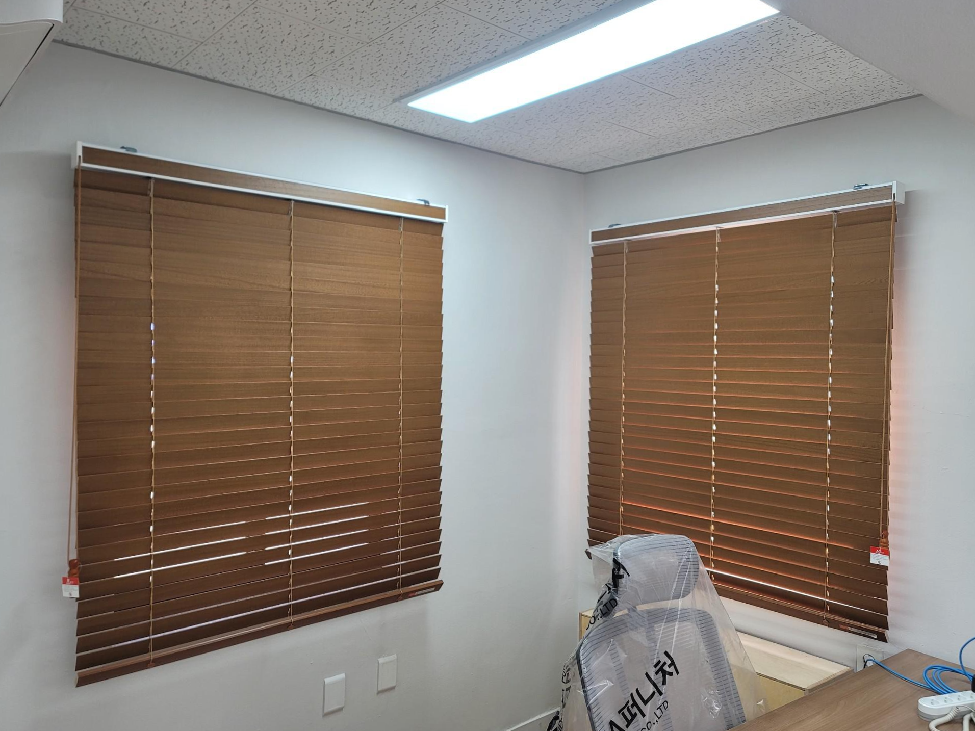 오늘은 회사 사무실에 우드블라인드 제품을 시공해드렸습니다.