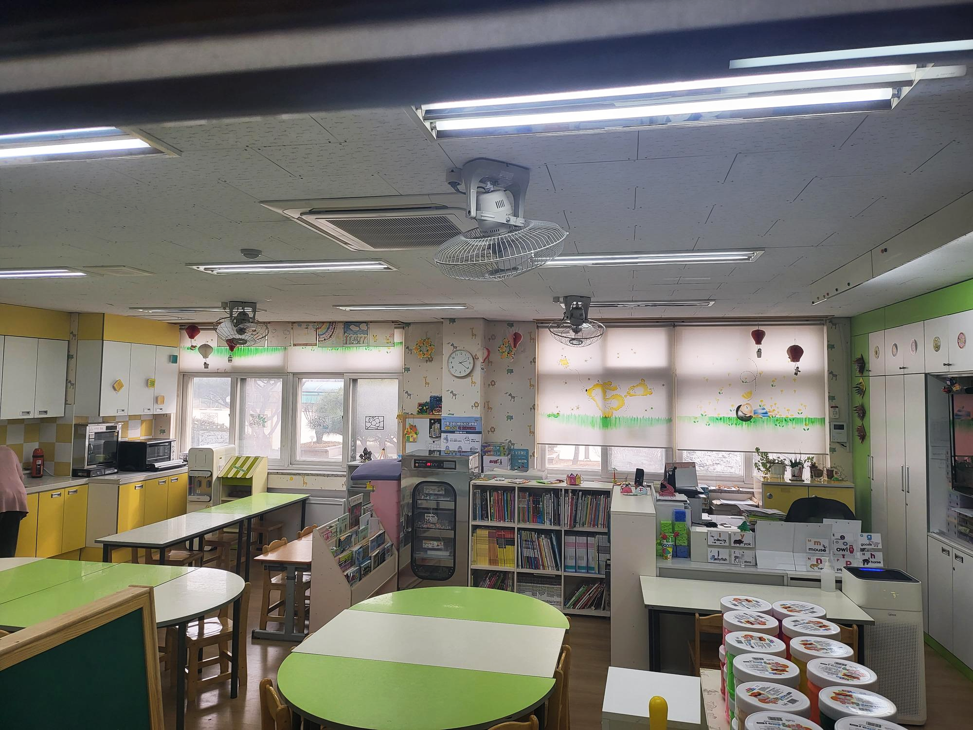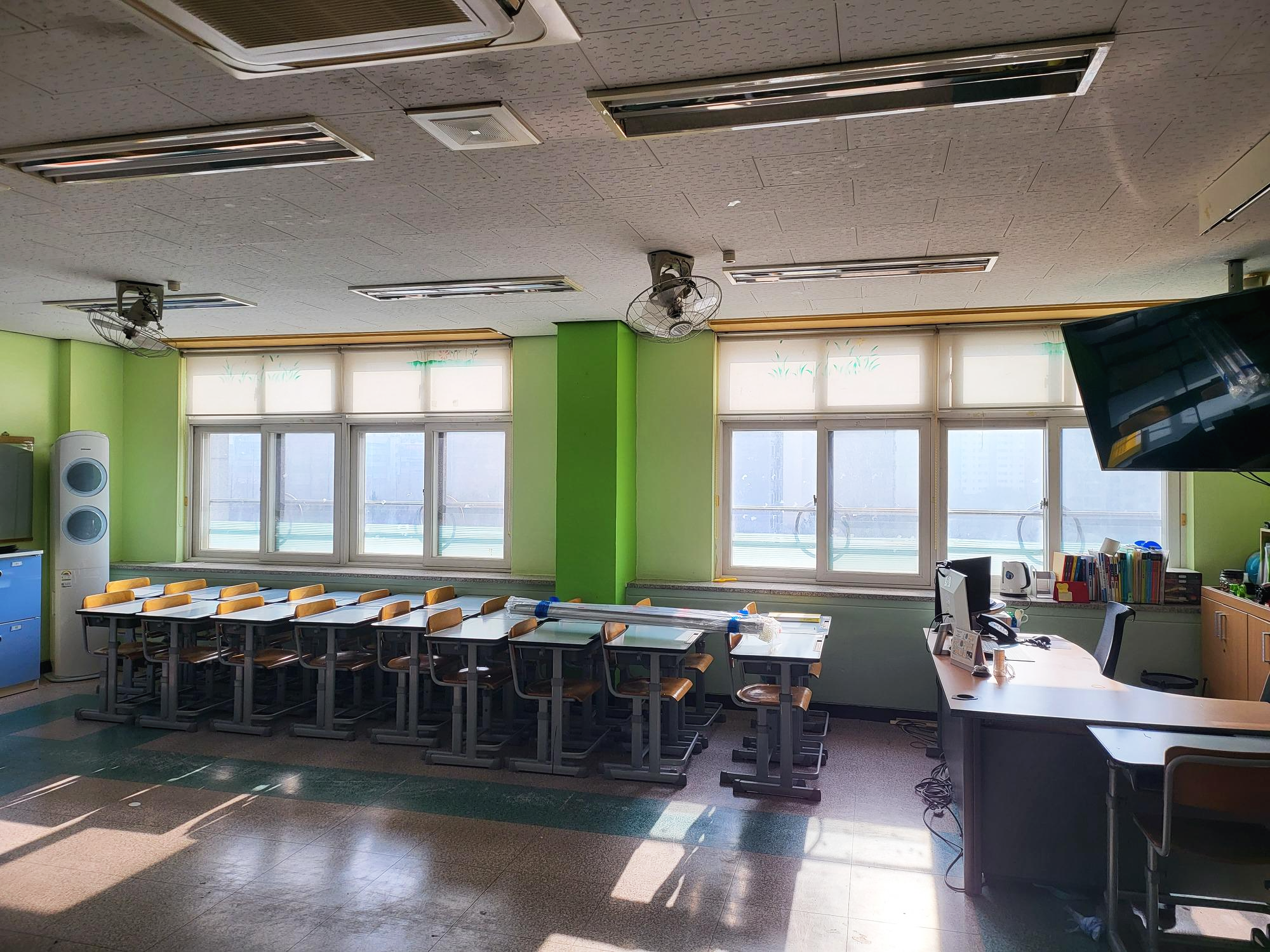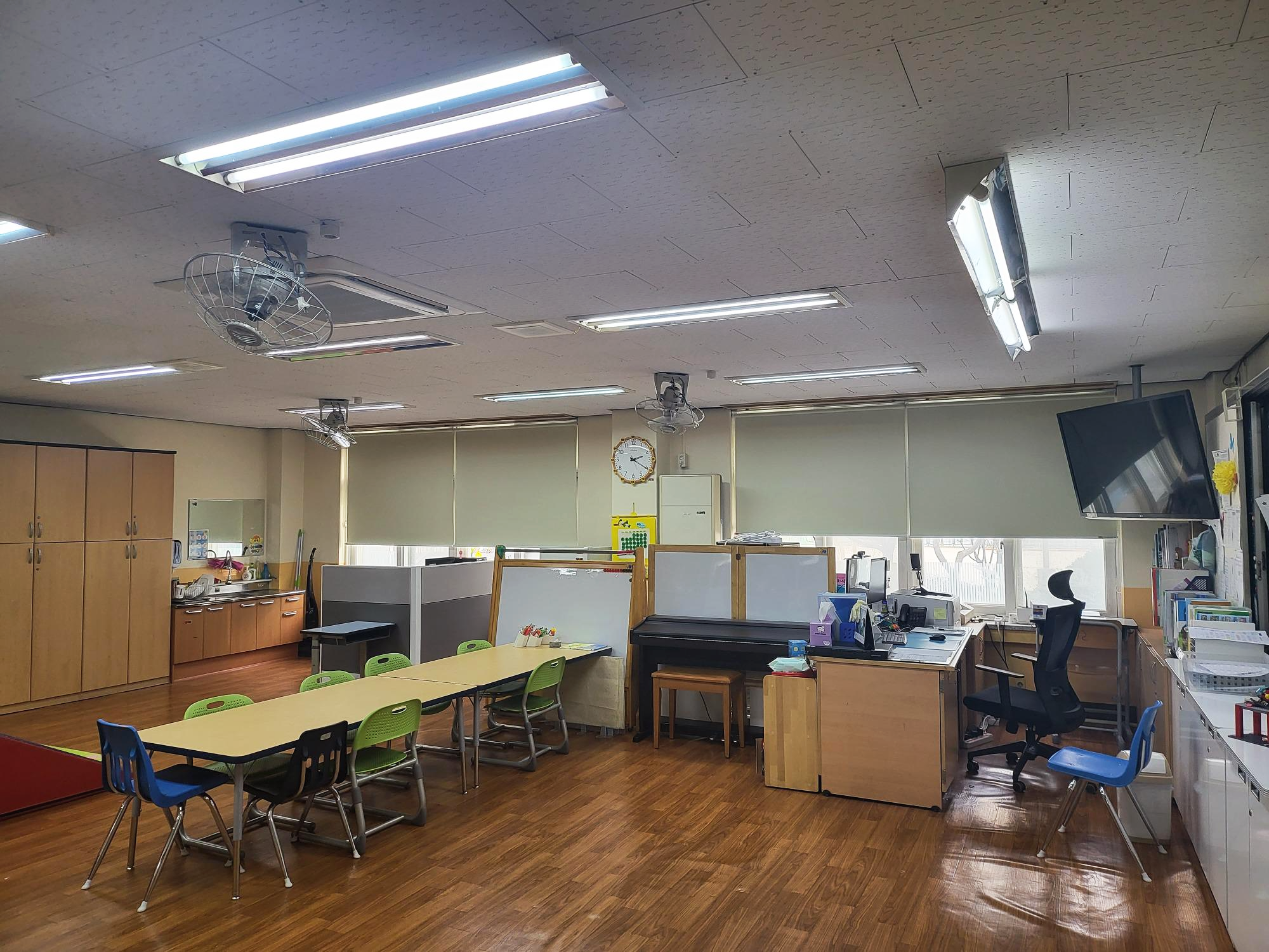기존의 교실에는 꽃그림이 들어간 실사롤스크린 제품이 시공되어있었습니다.
