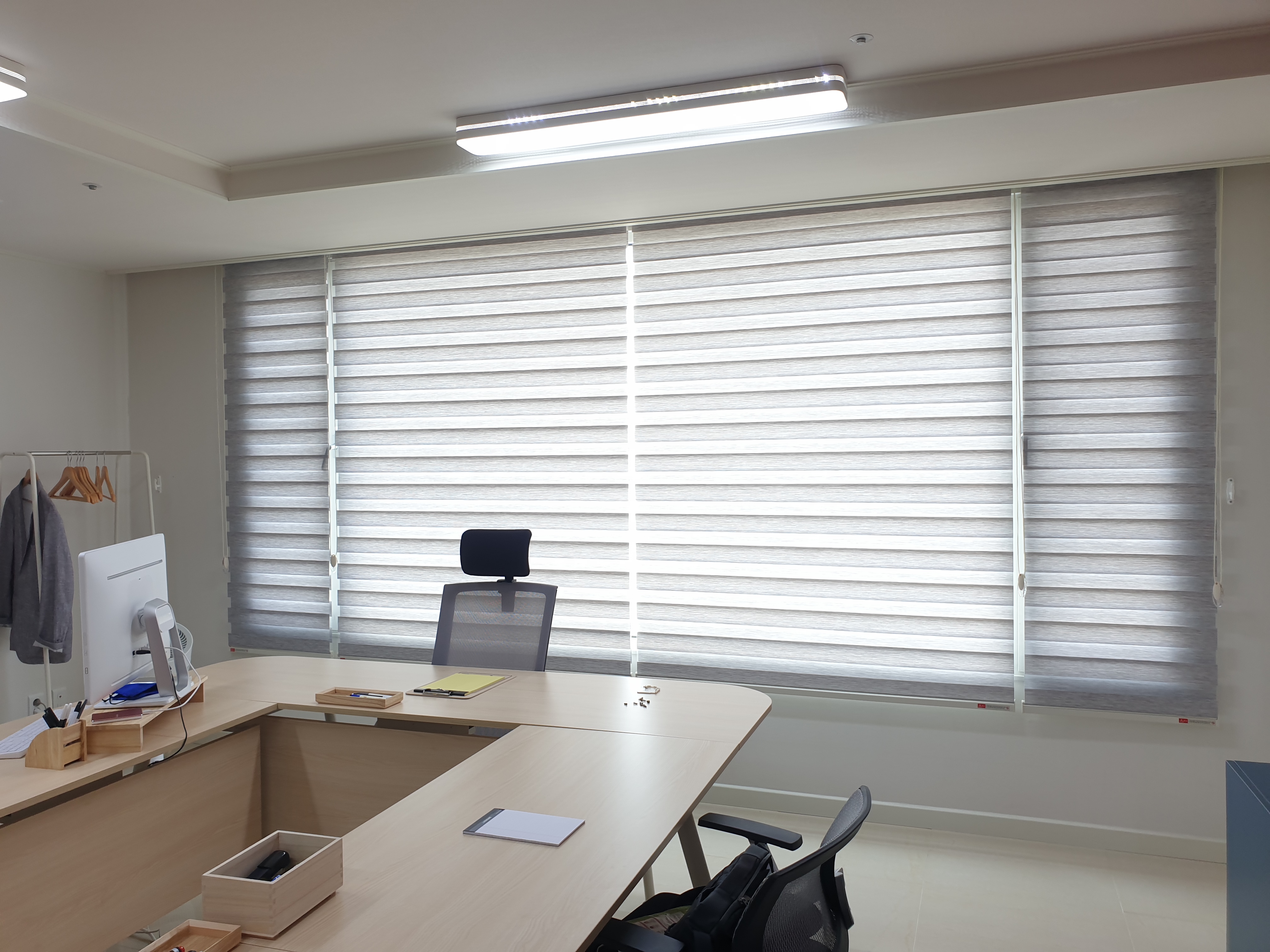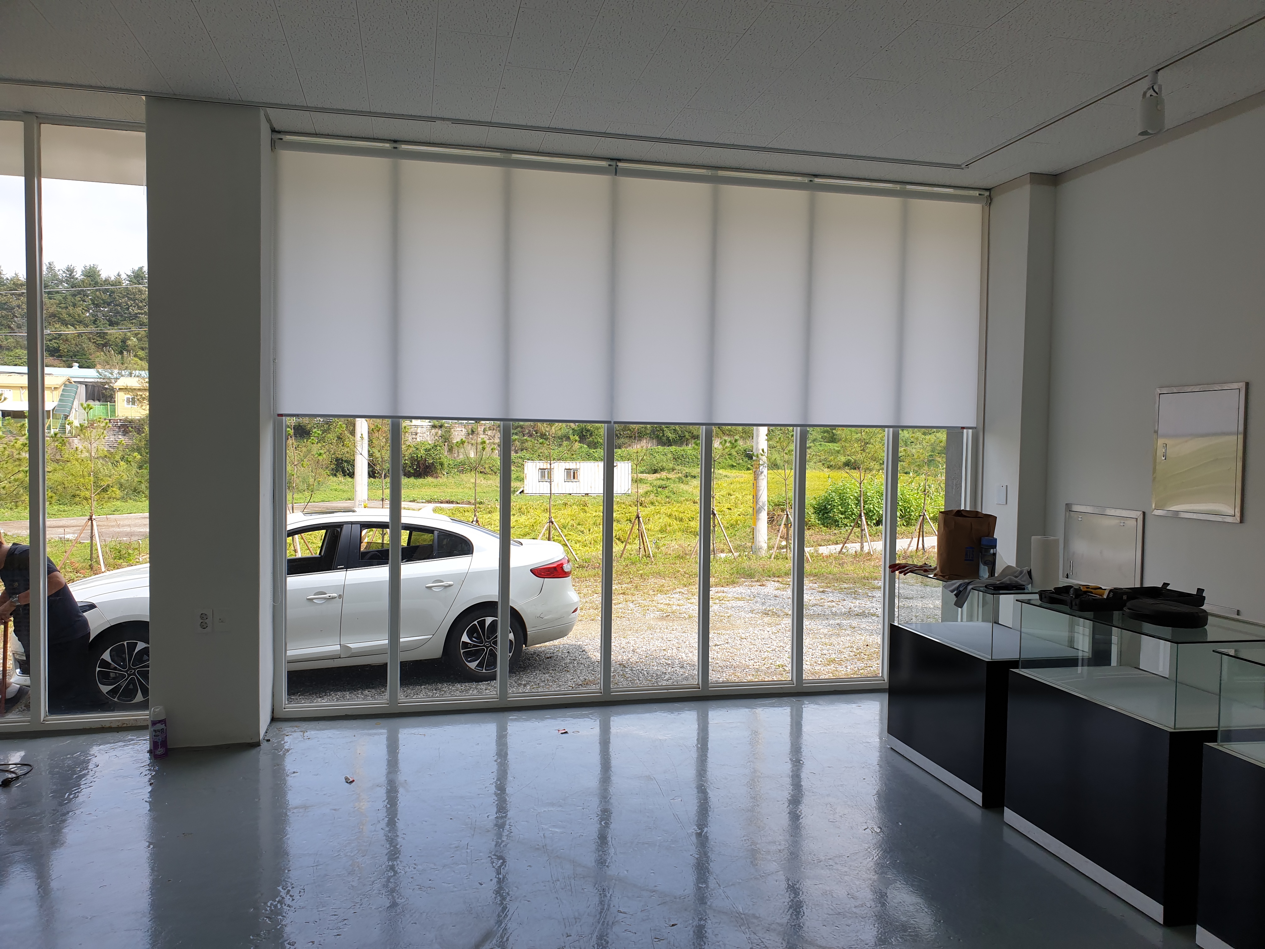 안녕하세요. 블라인드나라입니다. 오늘 보여드릴곳은 수지구 동천동에 위치한 카페인데요 ! 썬스크린(방염) 화이트색상으로 제품을 선택해주셨습니다. 썬스크린은 롤스크린과 동일한 형태와 작동방식도 동일하지만 원단에서 차이가 있습니다. 보통 롤스크린은 외부시선이 차단되는 제품이지만 썬스크린은 항상 어두운쪽에서 밝은쪽을 볼 수 있는 형태입니다. 어두운쪽에서 밝은쪽이 보이다보니 내부가 밝은 경우 외부에서 내부가 보이게 됩니다. 일반적으로 롤스크린의 경우 자외선뿐만 아니라 외부시선을 완전히 차단하는데 목적이 있지만 썬스크린의 경우 자외선은 차단하고 외부시선은 차단하지 않는 제품입니다. 썬스크린에는 1% 3% 5%등 원단 짜임새와 촘촘한 정도에 따라 외부시선을 많이 막아주게 됩니다. 위 시공사진 중 좌측에 시공 전을 ..
