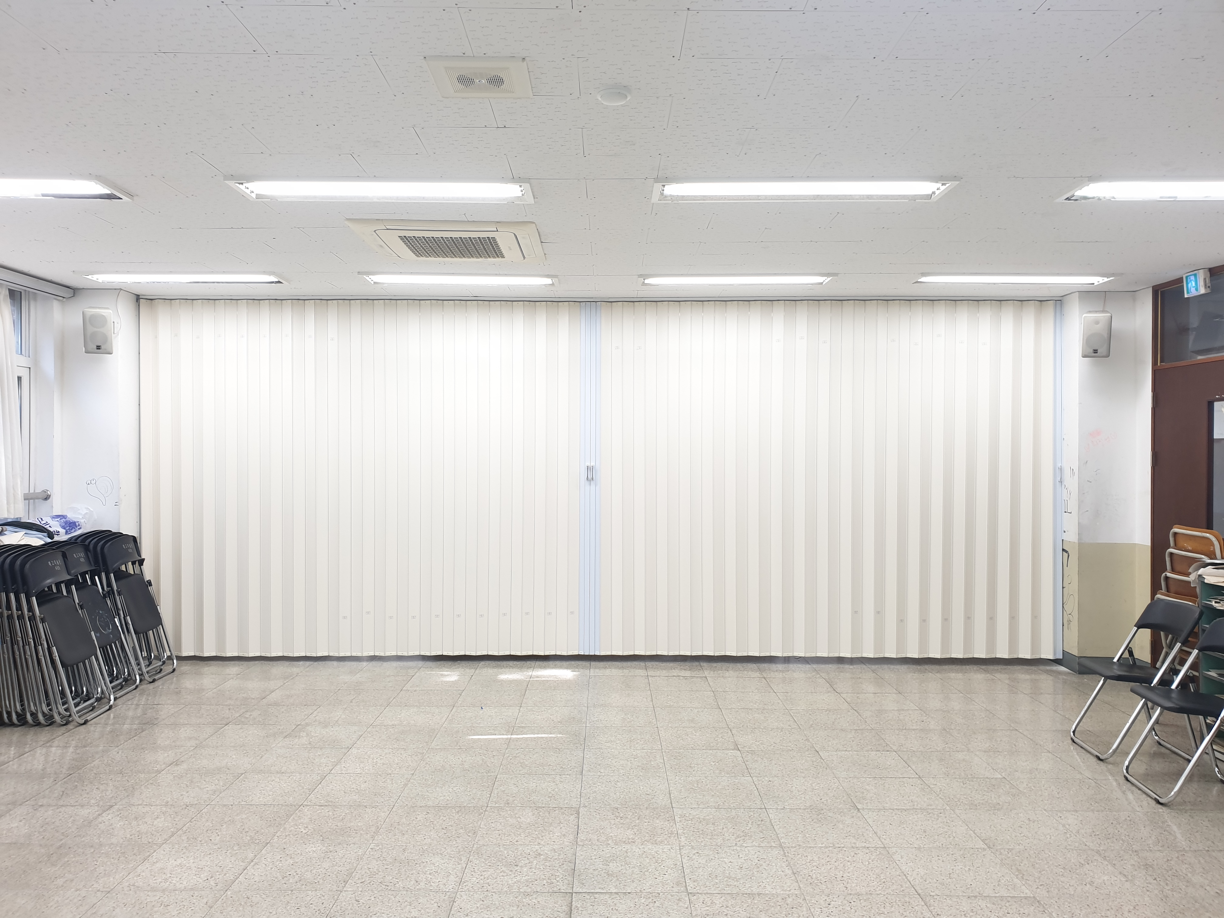 안녕하세요. 블라인드나라입니다. 오늘은 고등학교에 시공한 홀딩도어(자바라) 제품을 소개해드리겠습니다. 시공 현장이 학교이다 보니까 방염은 필수적으로 들어갔습니다. 방염은 화재 시 불에 잘 타지 않는 재질이며 관공서, 공공기관, 학교, 사우나 등 소방점검이 나오는 곳이라면 무조건 설치를 하셔야 합니다. 오늘은 미술실에 공간 분리 목적으로 홀딩도어를 설치했습니다. 홀딩도어 제품은 주로 공간 분리 목적이나 간이창고처럼 사용하기 위해 제품을 설치하는 경우가 많습니다 ^_^ 앞쪽은 책상에 앉아 수업을 들을 수 있도록 공간이 마련되어있으며 뒤에서는 자유롭게 앉아서 그림을 그릴 수 있는 공간으로 나뉘게 되었습니다. 홀딩도어를 설치함으로써 더욱 확실하게 공간이 분리되어 좋습니다! - 홀딩도어(자바라)는 PVC 재질로 ..