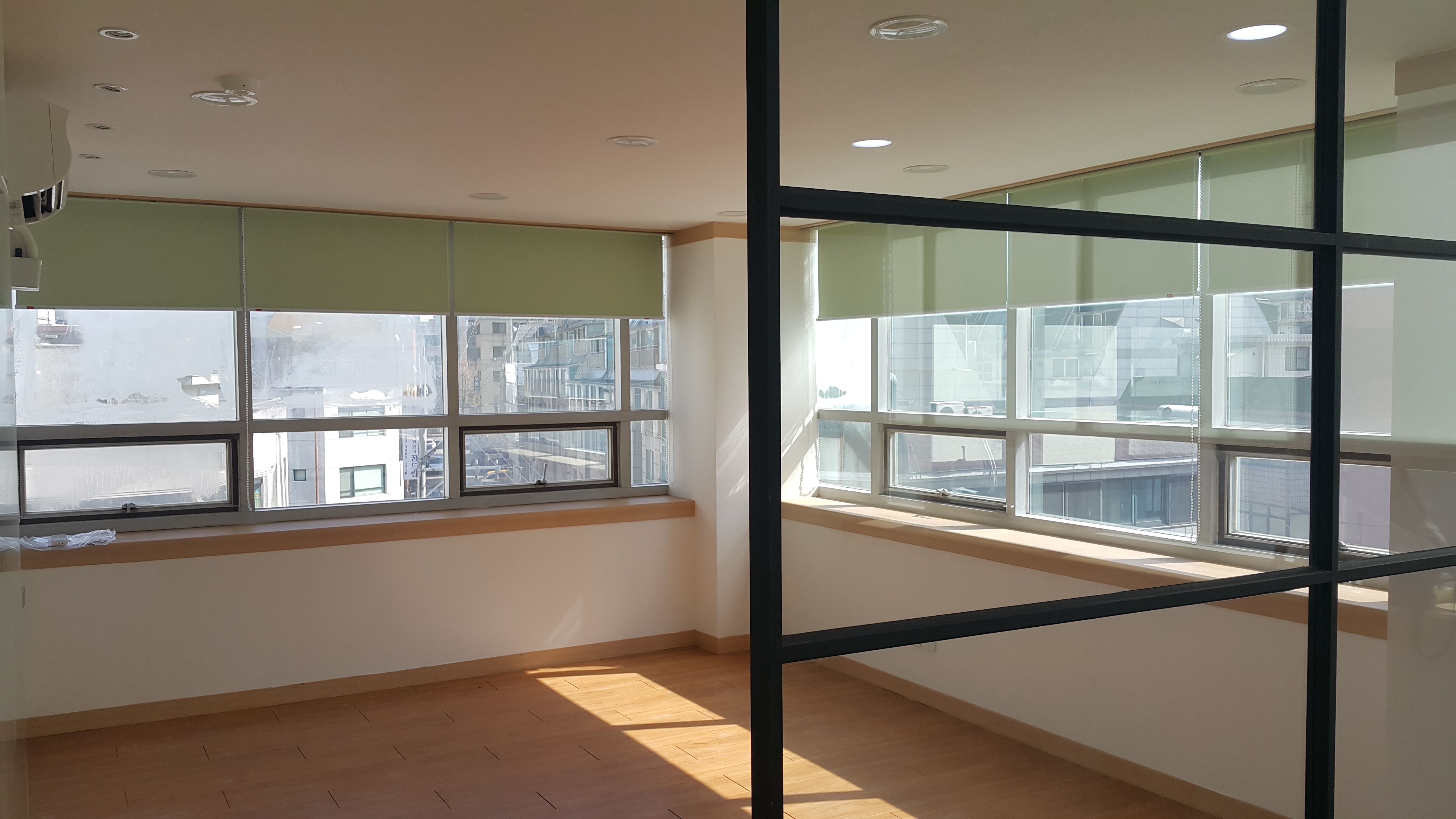 안녕하세요. 블라인드나라입니다. 오늘은 송파구 문정동에 시공한 롤스크린 제품에 대해서 설명해드리겠습니다. 사무실에 설치하였고 사무실 블라인드로 롤스크린 정도면 무난히 사용하실 수 있습니다~ 롤스크린에 대해서 설명해드릴게요! 집중해주세요~ - *롤스크린은 가장 많이 사용하기도 하며 제일 기본적인 블라인드의 형태입니다. 한 장의 원단으로 되어있으며 상하 작동 방식의 블라인드입니다. 색상과 원단이 다양하여 선택의 폭이 넓어 자유롭게 선택하시면 됩니다. 창문에 분할하여 롤스크린 설치를 한 모습입니다. 기본적인 블라인드여서 설치하고 난 모습이 깔끔합니다 ^_^ 롤스크린의 원단 중 무지 원단을 선택해주셨습니다. 무지는 말 그대로 아무런 무늬가 없는 원단이고 색상이 여러 가지로 다양합니다. 그중에서 그린 색상인데 색..