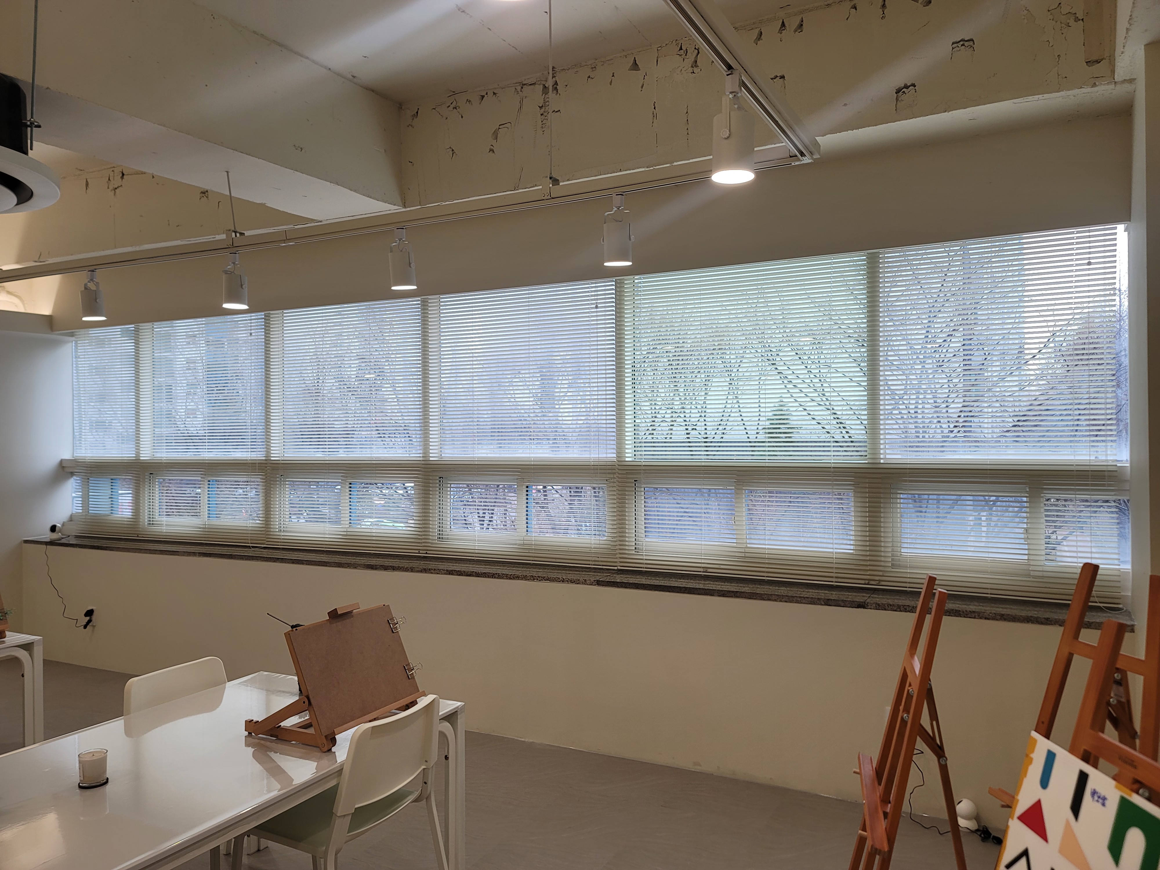 안녕하세요. 블라인드나라입니다. 오늘은 분당구 수내동에 위치한 미술학원 현장이었습니다. 시공 전 먼저 방문드려 사이즈를 실측해드렸는데 현장이 너무 깔끔하고 인테리어가 잘 되어 있어 처음에는 카페인 줄 알았답니다^-^ 사이즈 실측이 어려우시다면 [무료방문견적]을 신청해보시는 건 어떠세요? 경기/서울/수도권 지역에 한하여 저희가 설치 현장으로 방문드려 사이즈 실측도 해드리고 관심 있는 블라인드 샘플도 가져가 직접 확인하실 수 있습니다. 전문가가 직접 사이즈를 실측하니 한치의 오차범위 없이 블라인가 제작됩니다. 무료방문견적은 인터넷 접수 또는 유선상으로 예약이 가능하니 언제든 접수해주시면 됩니다! 예약접수가 완료되면 고객님과 통화 후 스케줄 조정을 한 후 방문을 드리고 있습니다. 전체적으로 화이트 계열로 이루..